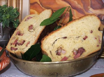 recheada com carne de porco gorda e/ou entremeada salgada e seca, barriga de